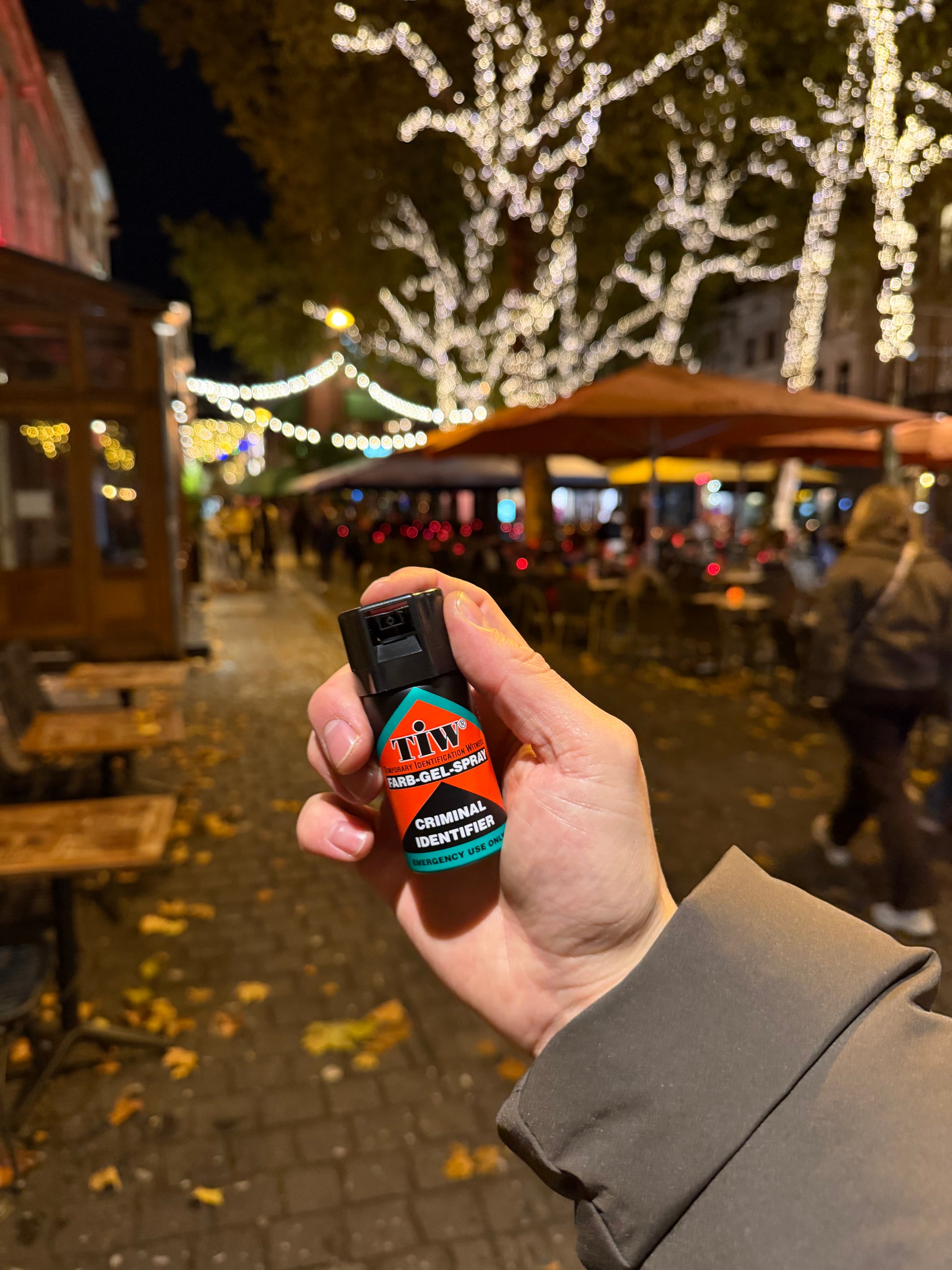 – TIW Gel Spray (40 ml) – markeert een aanvaller met rood kleurgel.